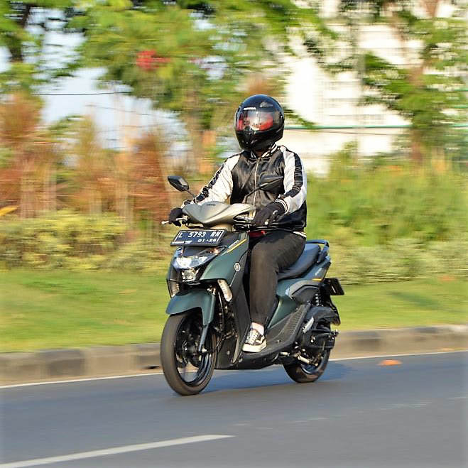 Meskipun wajah motor ini terbilang aneh dan tak biasa, bahkan mungkin polarisasi bagi sebagian orang, Yamaha dengan cerdik memberikan sentuhan futuristis yang kontras namun harmonis pada bagian tengah hingga ke belakang. Pergeseran gaya ini menciptakan dinamika visual yang menarik. Jika diperhatikan lebih saksama pada bagian lampu belakang, desain jok yang ergonomis, hingga aksen bodi samping yang ramping, kita akan menemukan nuansa yang sangat modern, bahkan mengingatkan pada estetika skuter listrik khas jenama garpu tala. Ini menunjukkan bahwa Yamaha tidak hanya fokus pada satu gaya, melainkan mampu memadukan berbagai elemen desain untuk menciptakan sebuah mahakarya yang holistik dan menarik dari berbagai sudut pandang. Perpaduan ini menciptakan sebuah skutik yang tak hanya fungsional, tetapi juga sebuah pernyataan gaya yang kuat di jalanan.